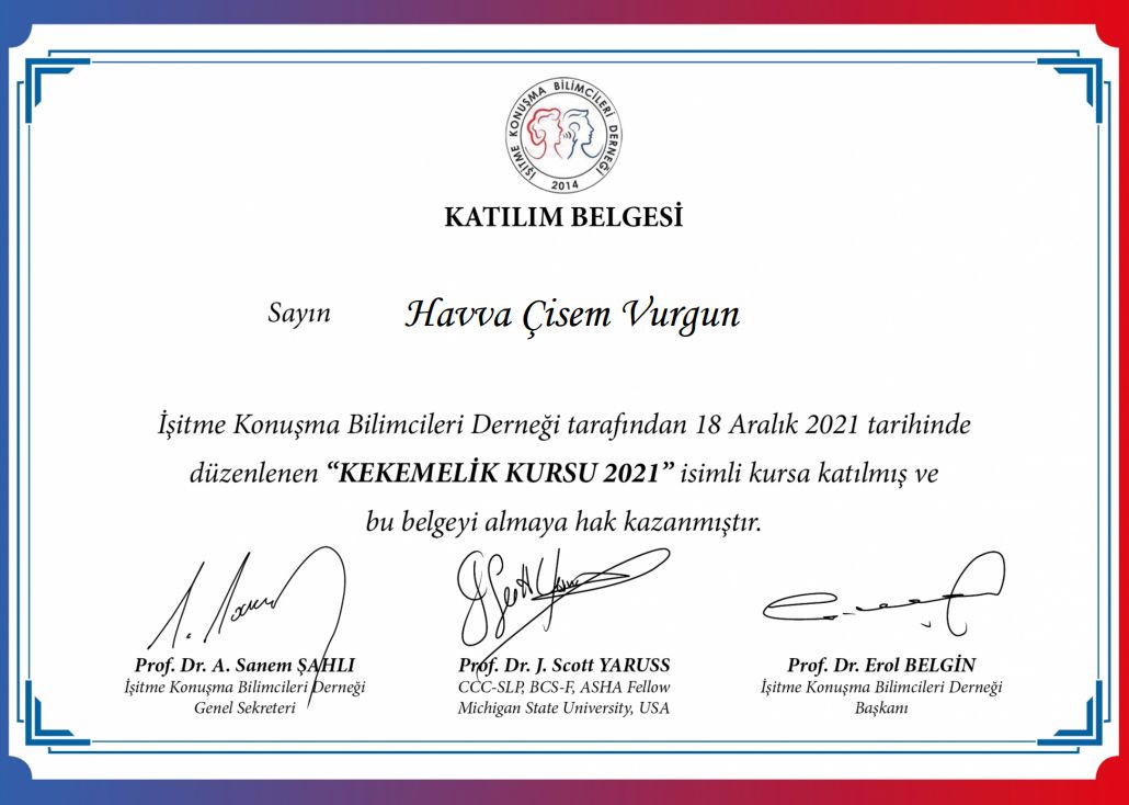 İstanbul Gelişim Üniversitesi Dil ve Konuşma Terapisi Bölümü mezunuyum. Lisans eğitimim süresince çocuklarda dil, konuşma ve iletişim bozuklukları üzerine yoğunlaşarak kapsamlı teorik ve uygulamalı eğitimler aldım.